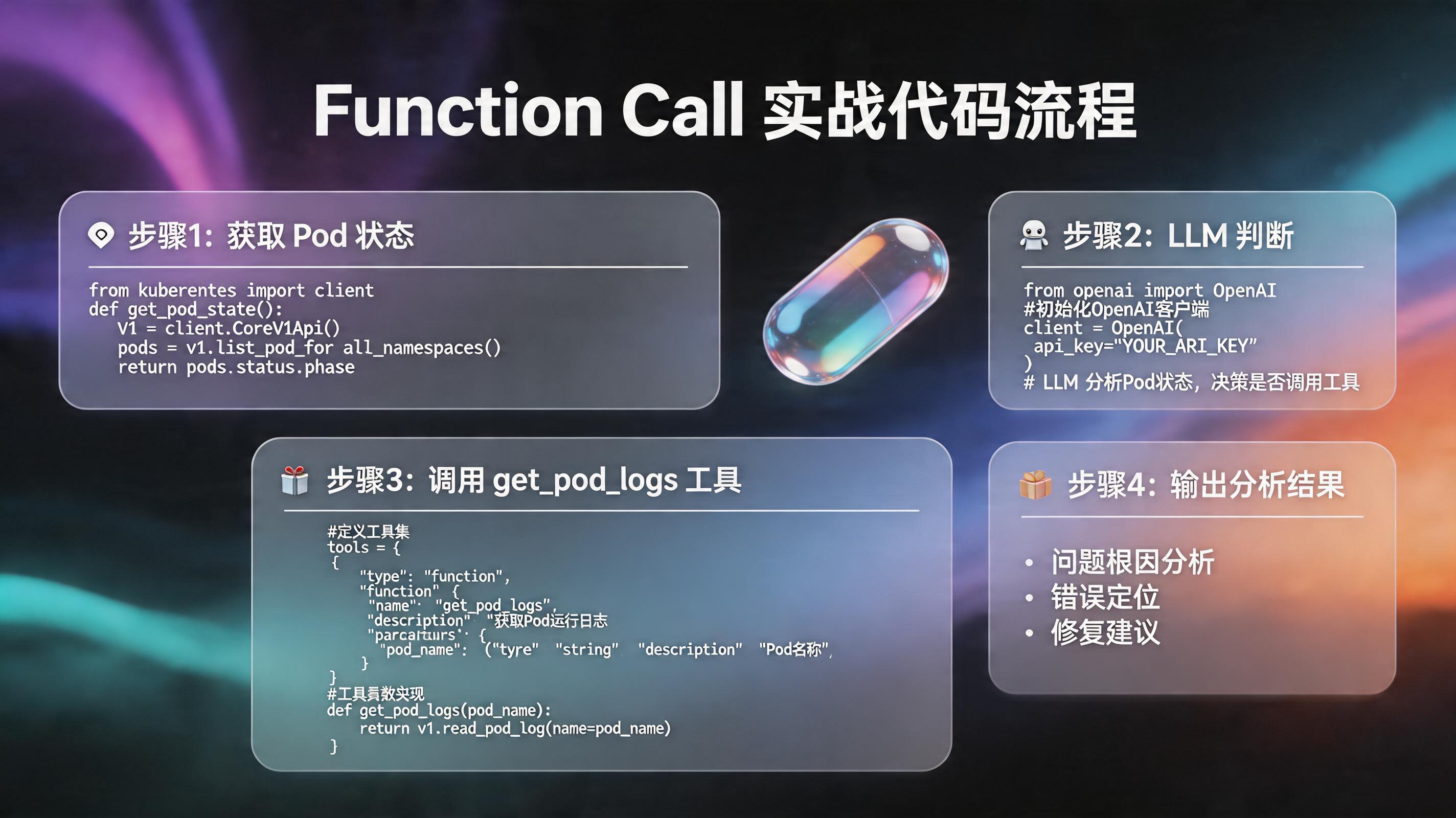 前言 今天是一期function call的实战 先上代码 function_call 先获取 Pod 当前状 […]