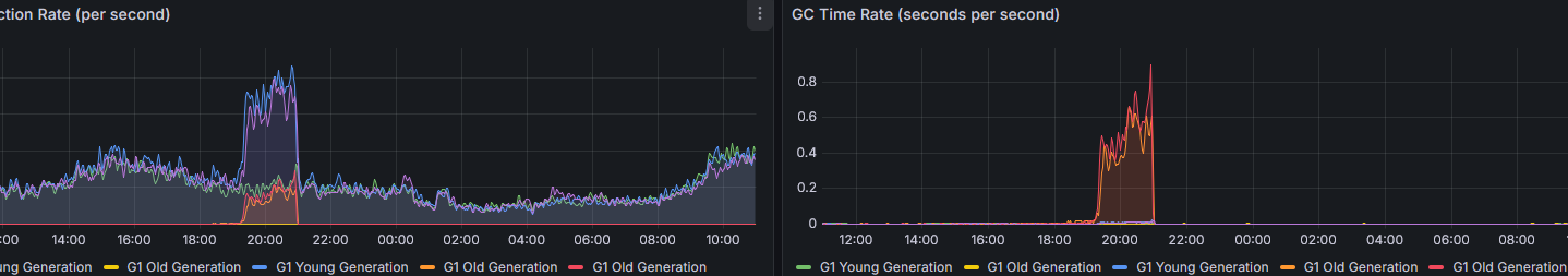 问题:当发生 Full GC 或长时间 GC 暂停时:
