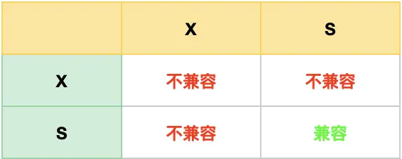 - 当一个事务对一条记录加了 S 型记录锁后,其他事务也可以继续对该记录加 S 型记录锁(S 型与 S 锁兼容),但是不可以对该记录加 X 型记录锁(S 型与 X 锁不兼容);