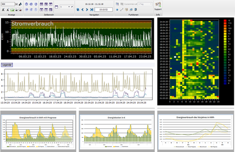 Metalogie 的 qrk3 软件提供的工业分析仪表板,用于监控能源消耗。