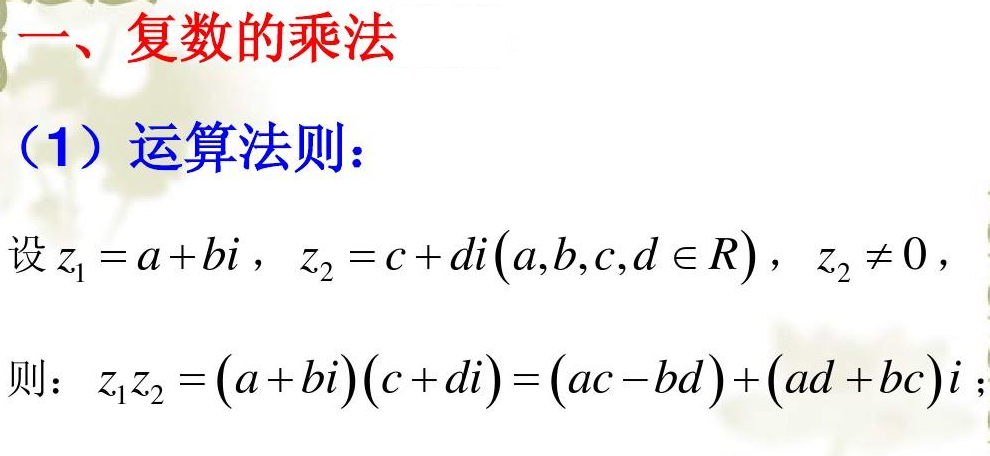 a + bi 是乘法的左侧参数, c + di 是乘法的右侧参数。