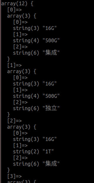 <?php $spec_list = [ 'memory' => ['16G', '32G', '64G'], 'storage' => ['500G', '1T'], 'graphics' => ['集成', '独立'], ]; $combinations = generateCombinations($spec_list); var_dump($combinations);