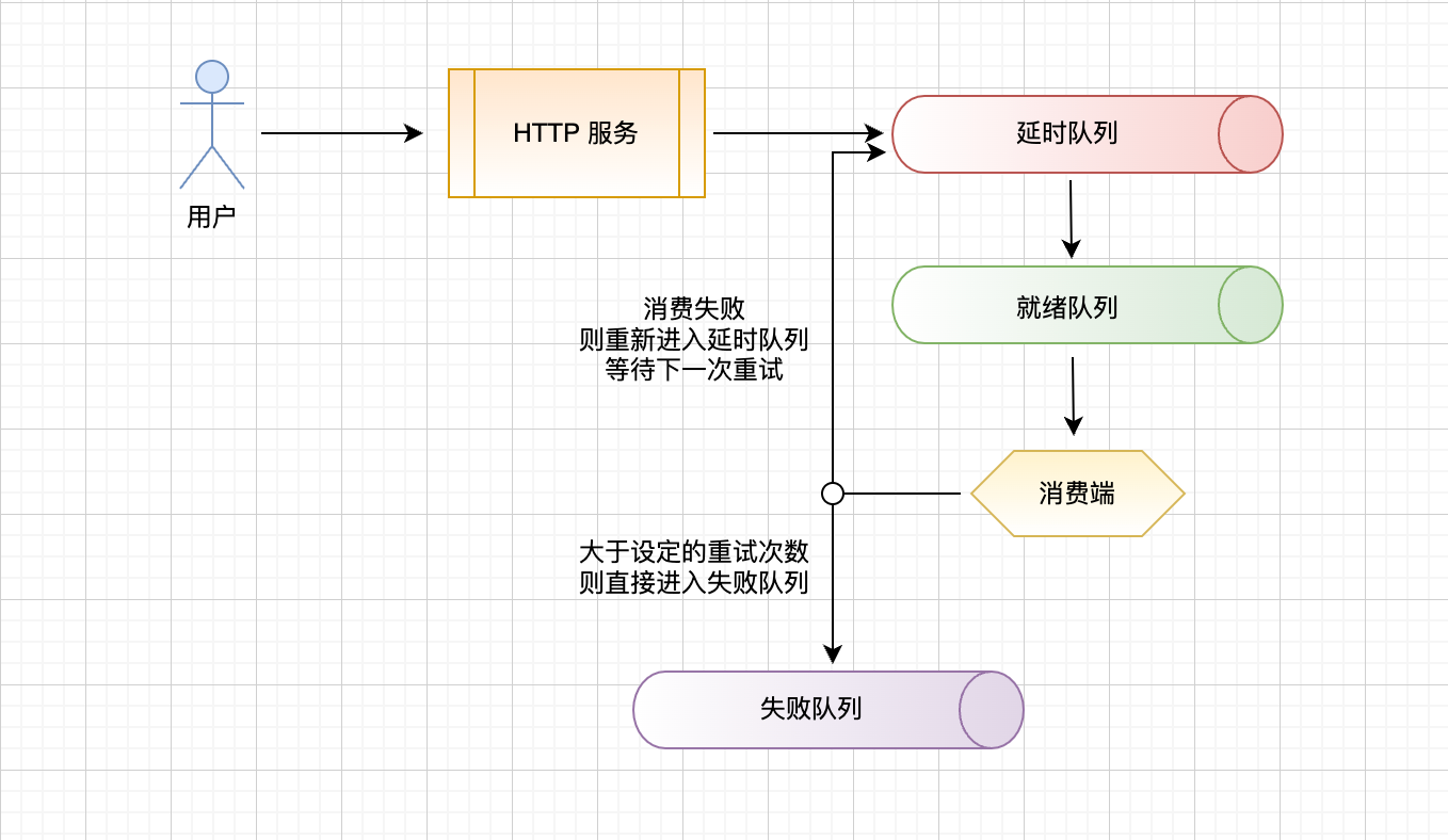 好了,我先介绍一下这次延时队列的实现逻辑。主要分为三个部分,一是:消息的发送,如果设置了延时时间则会将消息存储到 Redis 的延时队列中,反之会直接将消息推送到 Redis 的就绪队列中等待消费。二是:将到期的消息从 Redis 延时队列中取出,并且推送到 Redis 的就绪队列中等待消费。三是:消费端会从 Redis 的就绪队列中按顺序读取出消息,并且执行对应的业务处理逻辑,如果处理失败则会将该消息,再次推送到 Redis 的延时队列中进行下一次的重试。