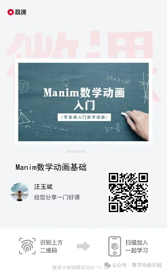 这门课或许不能让你立刻成为动画大师,但它会给你一把钥匙:当你下次想解释一个数学概念时,可以不再依赖静态的图,而是打开代码,让图形自己「动起来说话」。