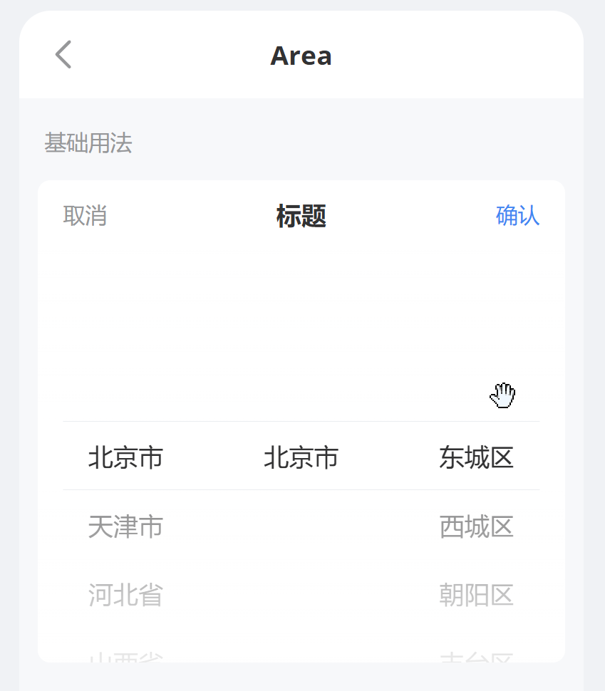如参考Vant4的Area省市区选择组件:https://vant-ui.github.io/vant/#/zh-CN/area