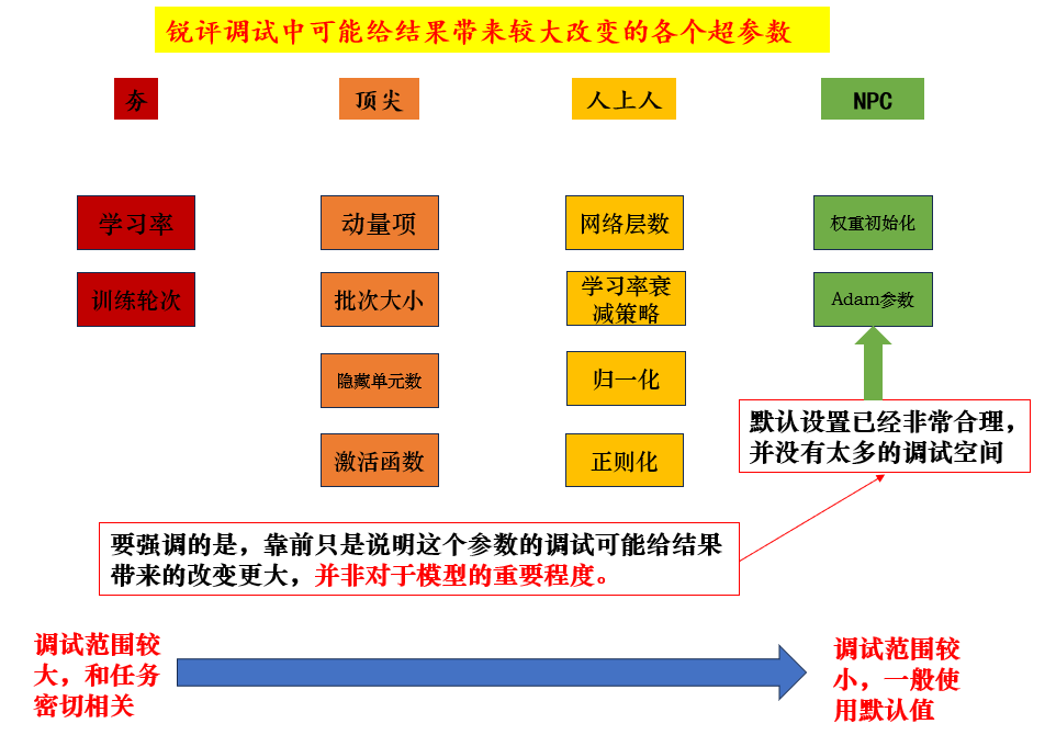 在学习过程中相信你也能直观感受到,有些超参数的调整对结果影响更大。