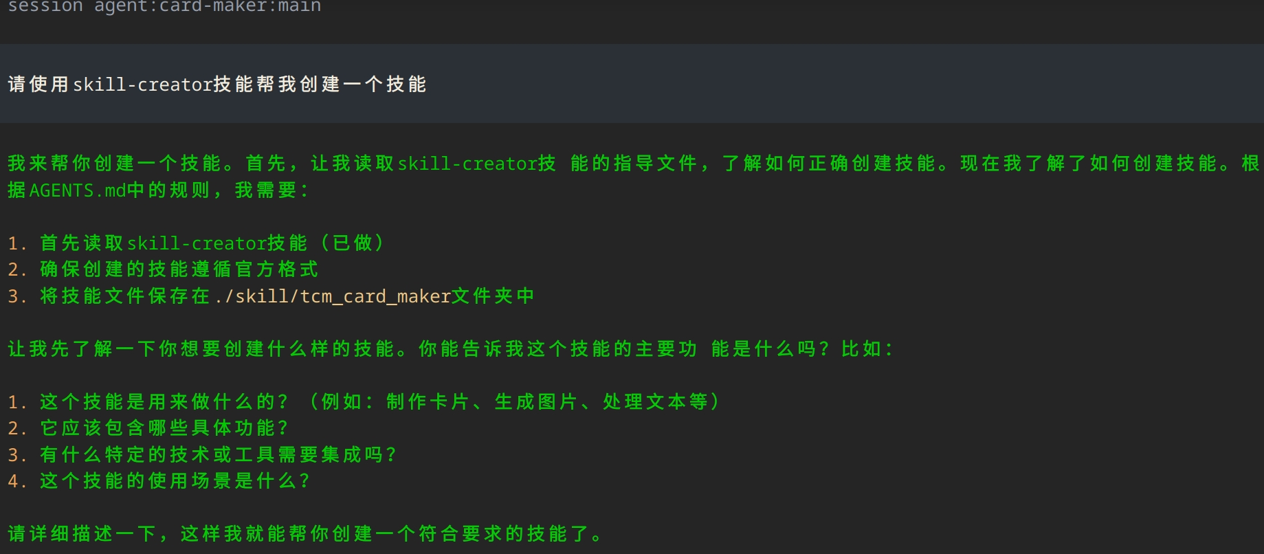 skill-creator会引导模型一步步获取创建技能所需的信息。