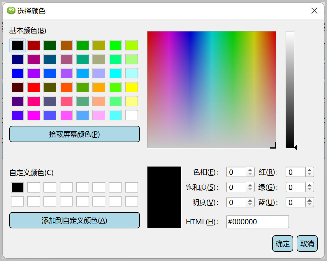 colour = QColor(Qt.GlobalColor.black) # 打开颜色选择对话框 selected_colour = QColorDialog.getColor(colour, parent) # 返回选择的颜色和是否成功 return selected_colour, selected_colour.isValid()