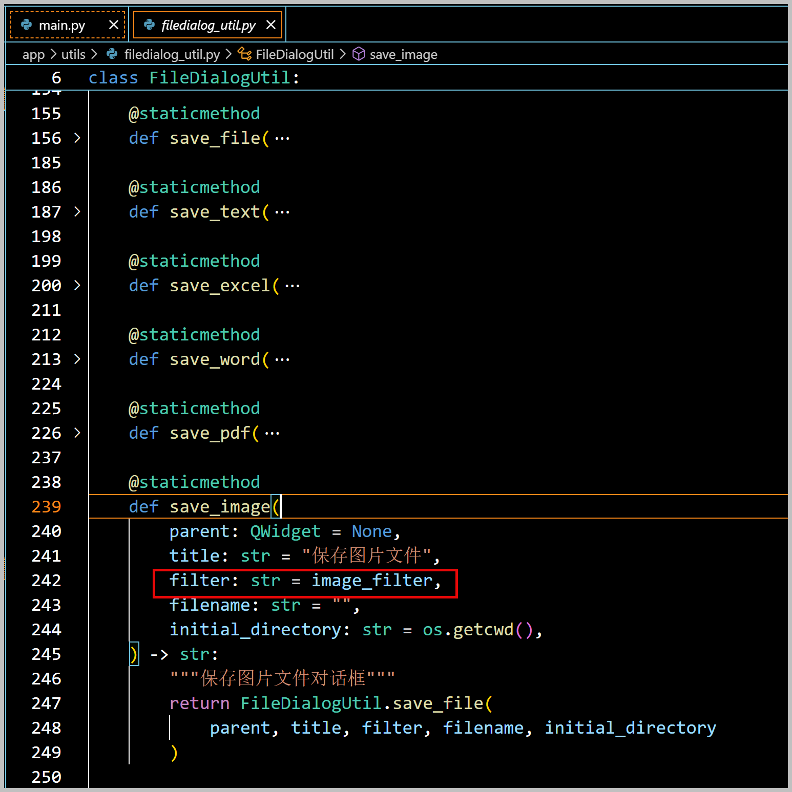 dialog.setAcceptMode(QFileDialog.AcceptMode.AcceptSave) # 设置为保存模式  dialog.setNameFilter(filter)