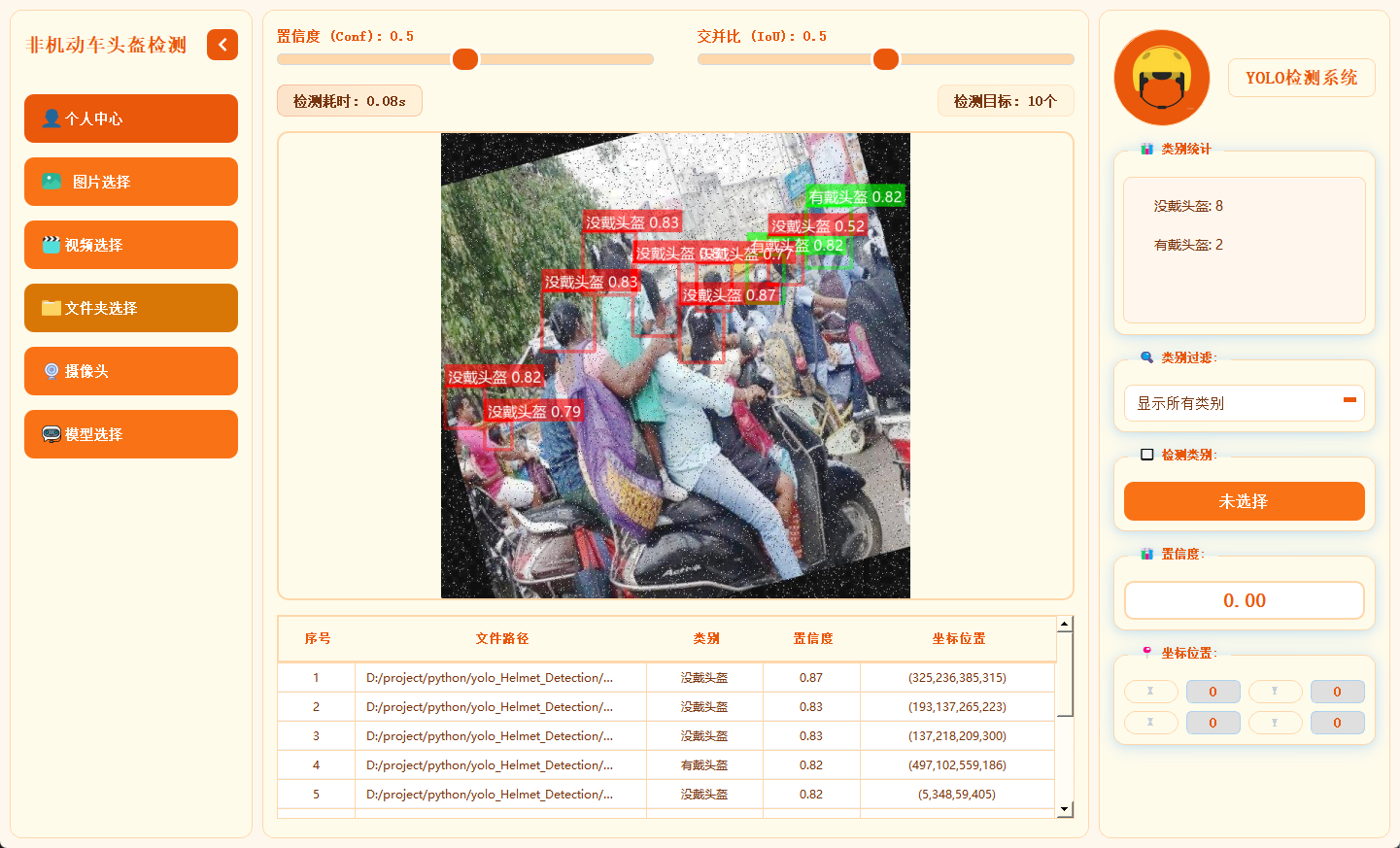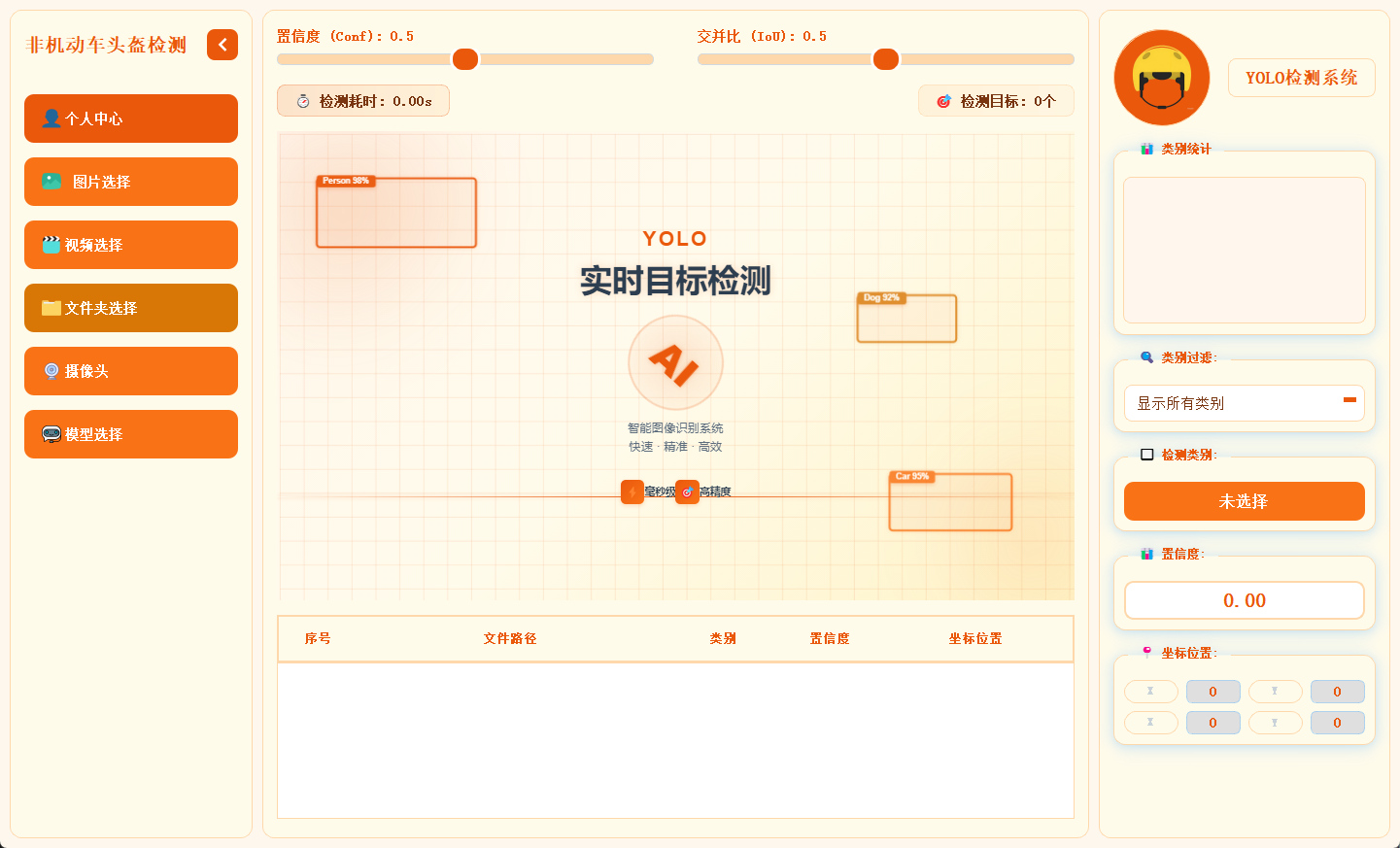 在城市骑行安全日益受关注的当下,我们想和大家分享一个用技术守护出行的小成果——基于 YOLO 算法的非机动车头盔检测系统。它的核心很简单:帮我们快速判断骑车人有没有戴头盔,用直观的界面和灵活的功能,把“安全检测”变成可操作、可观察的过程。