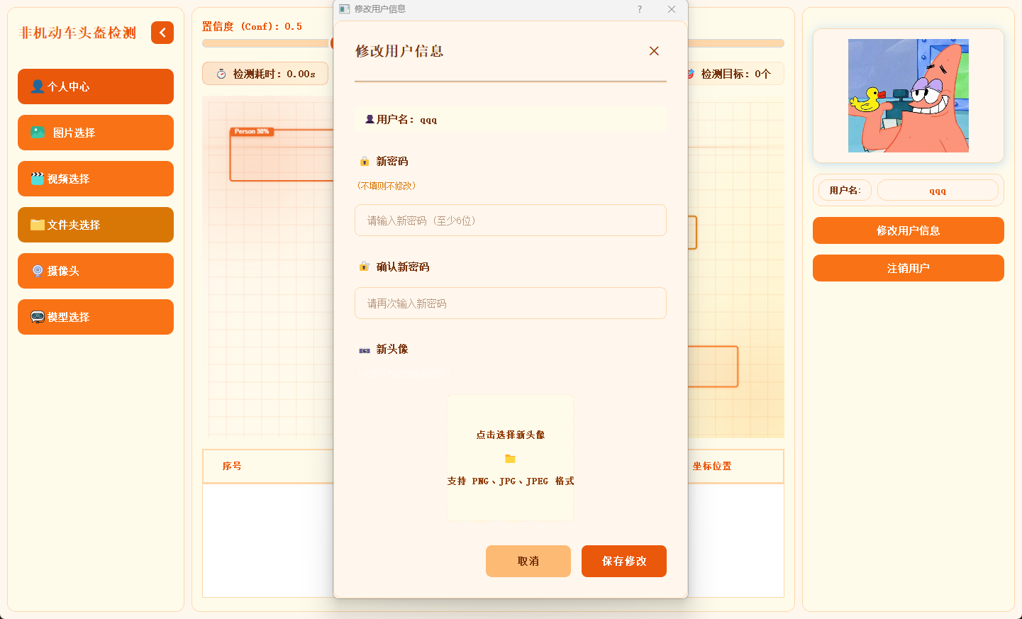 用户可在此模块中修改密码或更换头像,个人信息支持随时更新与保存。
