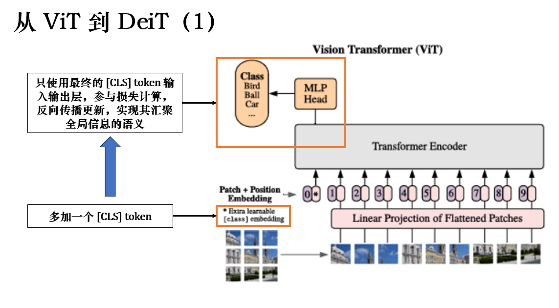 在此基础上,我们为了整合全局信息用于 CV 任务,又加入了 [CLS] token :