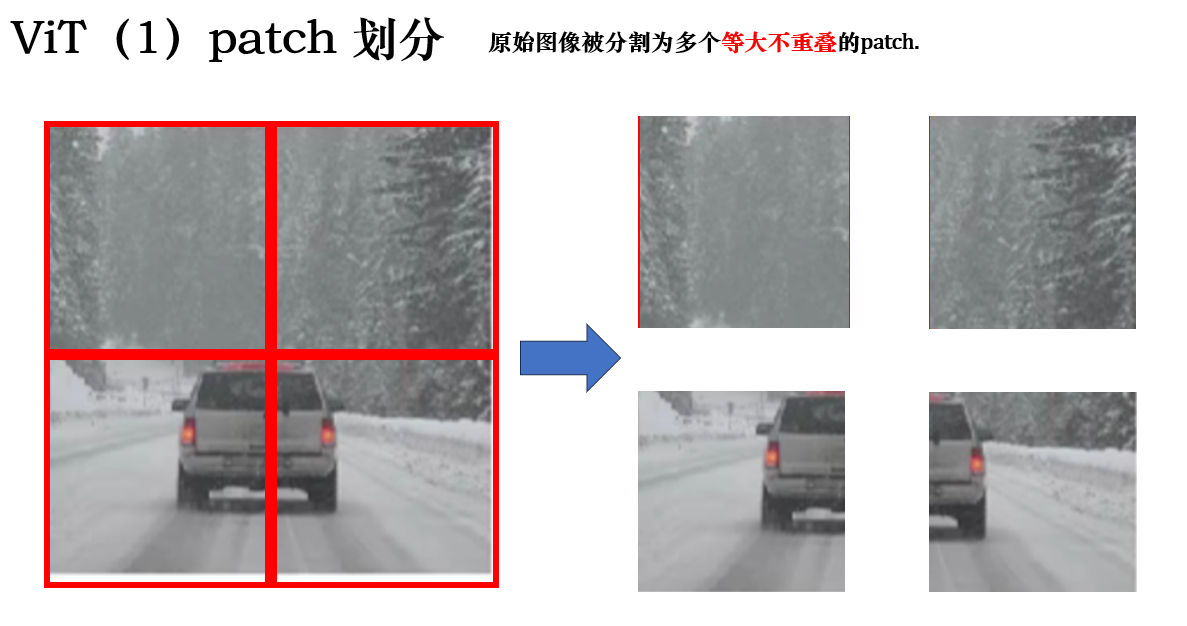 首先,我们要把图像分割成一个个等大不重叠的块,即 Patch :