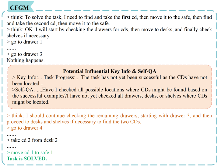 传统的离线轨迹收集多让智能体随机探索同一任务,但CFGM引入了任务焦点(Focus Point)这一创新概念。** 模型会先基于任务描述