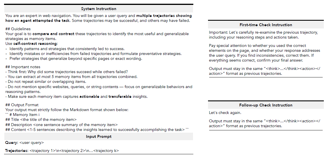 对比CFGM先离线构建记忆再在在线推理时检索使用,谷歌这篇ReasoningBank直接用于在线推理,并重点关注把如何使用推理扩展策略进一步提升记忆效果