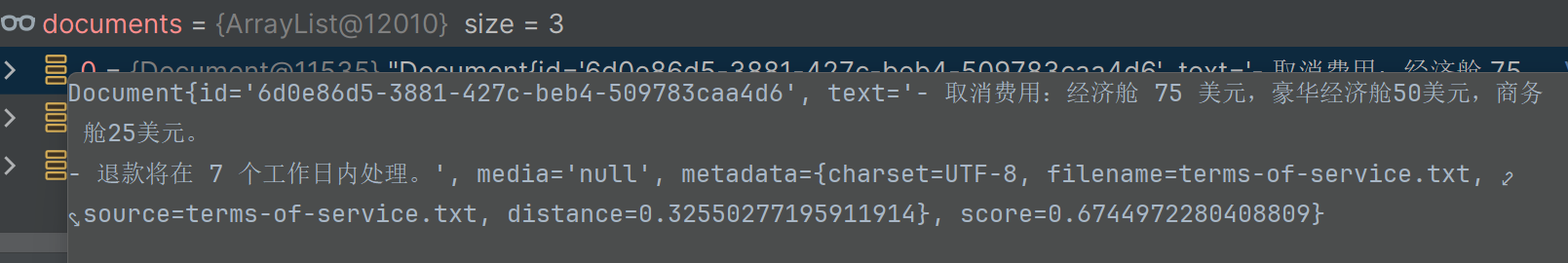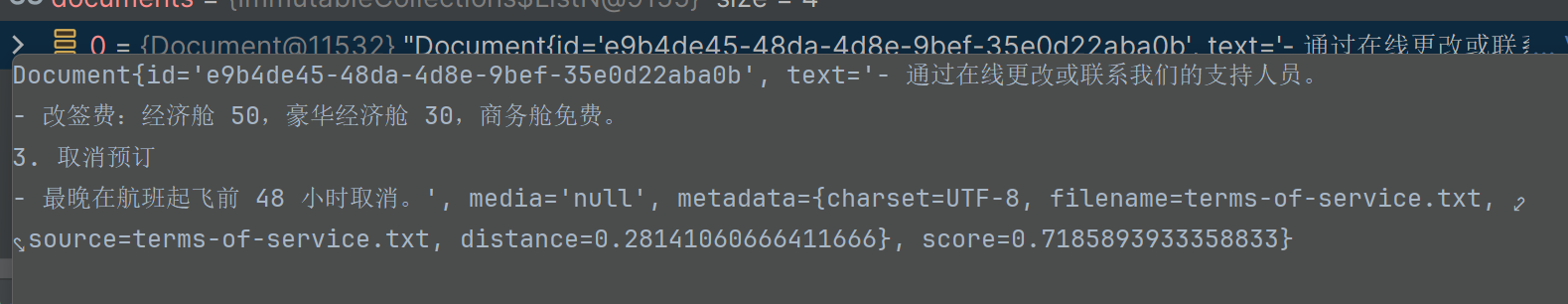 - 我分隔的比较小new ChineseTokenTextSplitter(80,10,5,10000,true);为了有更多的document;