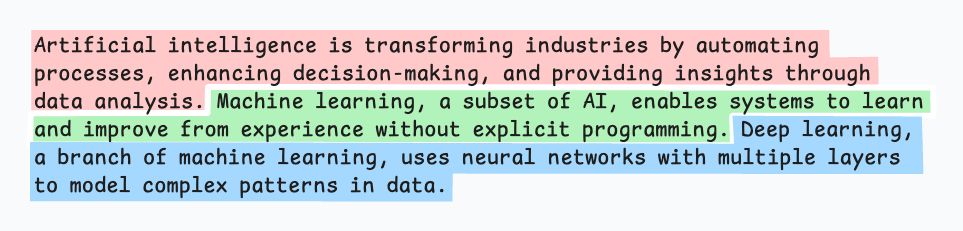 TokenTextSplitter splitter = new TokenTextSplitter(1000, 400, 10, 5000, true);