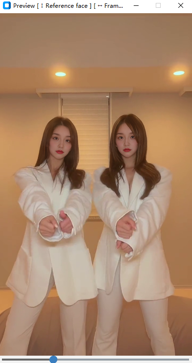 此外Roop还提供了“预览”功能,可以通过键盘的“↑↓”键切换需要替换的人脸,“←→”键拖动视频进度条