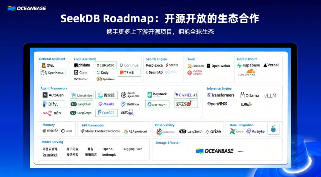 相比 OceanBase,seekdb 会更聚焦于开发者和生态。我们将积极与上下游生态伙伴合作,尤其期望能与 AI 开源项目、国内头部开源项目和全球顶级开源项目建立深度合作。