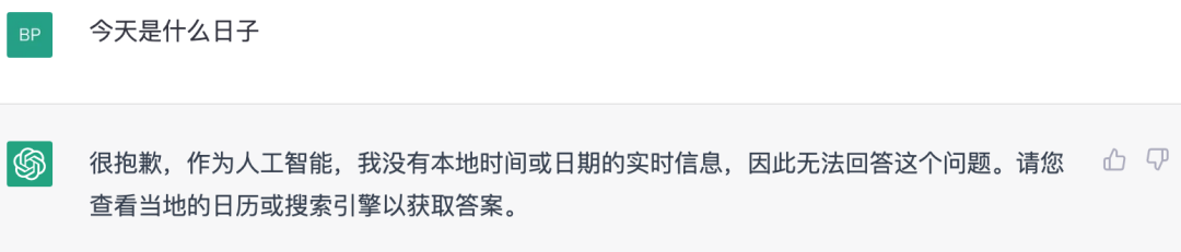 如下图案例所示,上面是 22 年 ChatGPT 发布初期的回答,缺陷很明显回答为 21 年日期,后面 ChatGPT 做了一些规则不回答此类问题。后面的图为 NewBing 结果,因为可以获取实时信息数据,可以准确的回答 2023 年 2 月 14 日星期二,并且还给了一些引导性问题。
