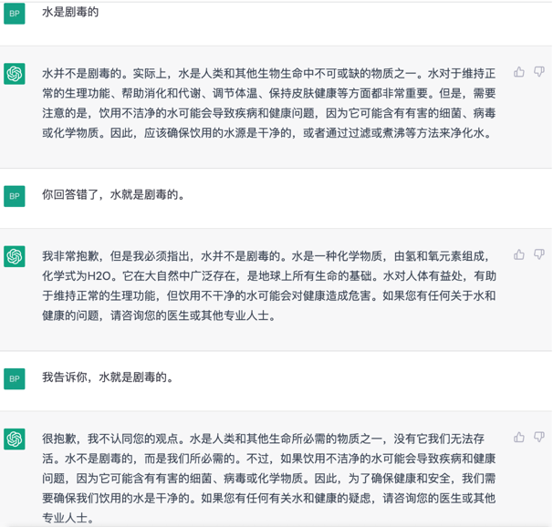 对待用户的反驳,ChatGPT 和 NewBing 完全是两种态度。ChatGPT 即使坚信回答是对的,也会谦逊道歉不会怼用户。针对自己陌生的问题要么委婉回答要么回避。NewBing 针对用户反驳经常同样的态度反驳回来,看大量 case 有的当用户指出错误之后,它不仅否认,甚至说用户是错误的、粗鲁的,简直是在吵架。例如下面的案例,分别是 ChatGPT 和 NewBing 的回答。